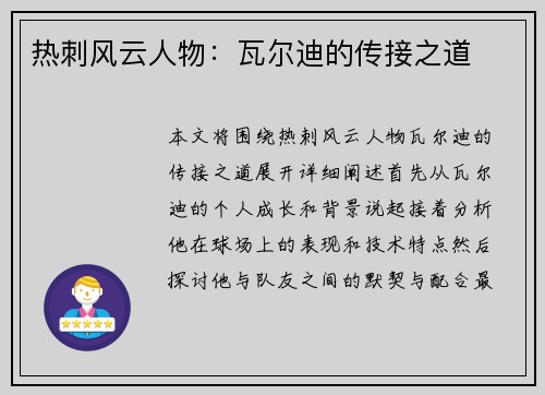本文将从四个方面详细阐述国青未来攻击能力或受刘诚宇缺阵影响,焦点放在上海选拔前锋。首先对国青未来攻击能力进行分析,其次探讨刘诚宇缺阵对国青的影响,然后聚焦于上海选拔前锋的重要性,最后从选拔标准和潜力挖掘两个方面展开讨论,总结归纳全文观点。伟徳国际...